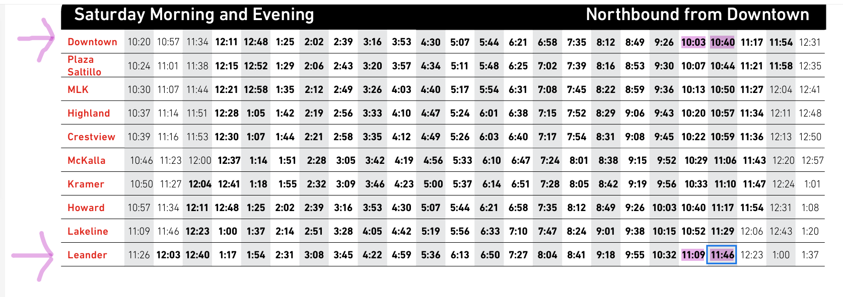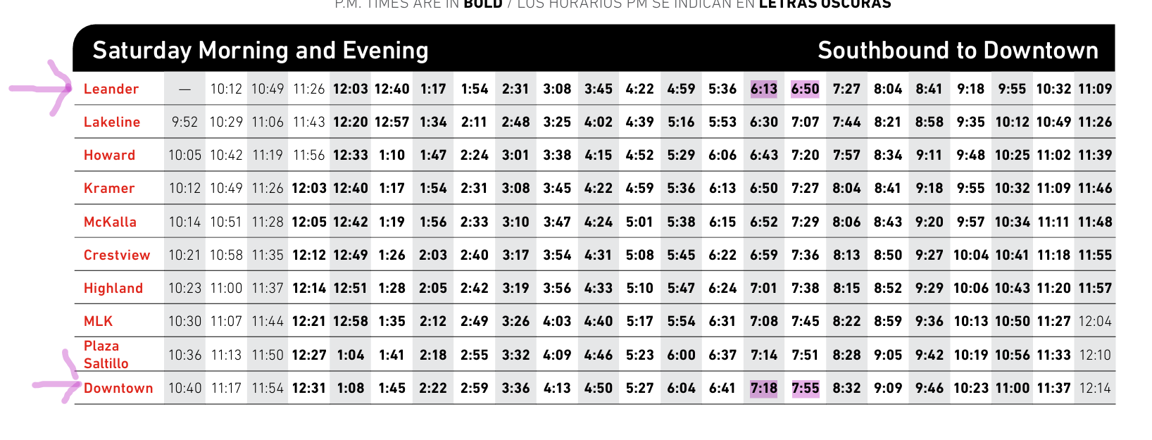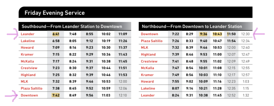 Friday evening light rail going from Leander to downtown and back to Leander.