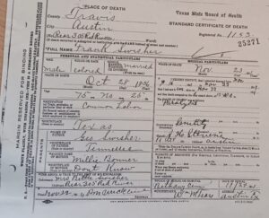 Just behind the Sunday House the Mason family lived at 305 ½ Red River Street today known as the Carriage House and part of the Moonshine Grill compound. According to the federal census the household included Godfrey, a preacher, his wife Mary, a washerwoman, and teenage son and daughter Alex and Ruth. Also, on and off through the years Frank and Bettie Swisher lived at this location. Both were former enslaved people. Frank was the son of George Swisher the enslaved person of Jame G. Swisher. Both were Austin’s first residents. Frank Swisher died here in November of 1923.